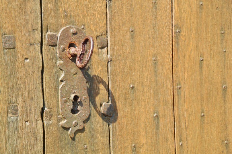 O movimento feito pela peça chamada trinco é o que aproveitaremos para abrir a porta. Para isso implementamos o uso de uma faca, de preferência pontiaguda.
